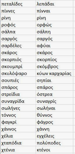 Οι αρχαίες γραπτές πηγές σώζουν πλήθος πληροφοριών σχετικά με τα είδη των θαλασσινών που καταναλώνονταν, καθώς και τους τρόπους αλίευσης και μαγειρεύματός τους. Υπήρχαν μάλιστα και ειδικά συγγράμματα επί του θέματος, π.χ. Αριστοτέλους Περί ιχθύων, Αρχίππου Ιχθύς, Δωρίωνος Περί ιχθύων, Νουμηνίου Αλιευτικός, Ευθυδήμου Περί παστών, Αντιφάνους Αλιευομένη.